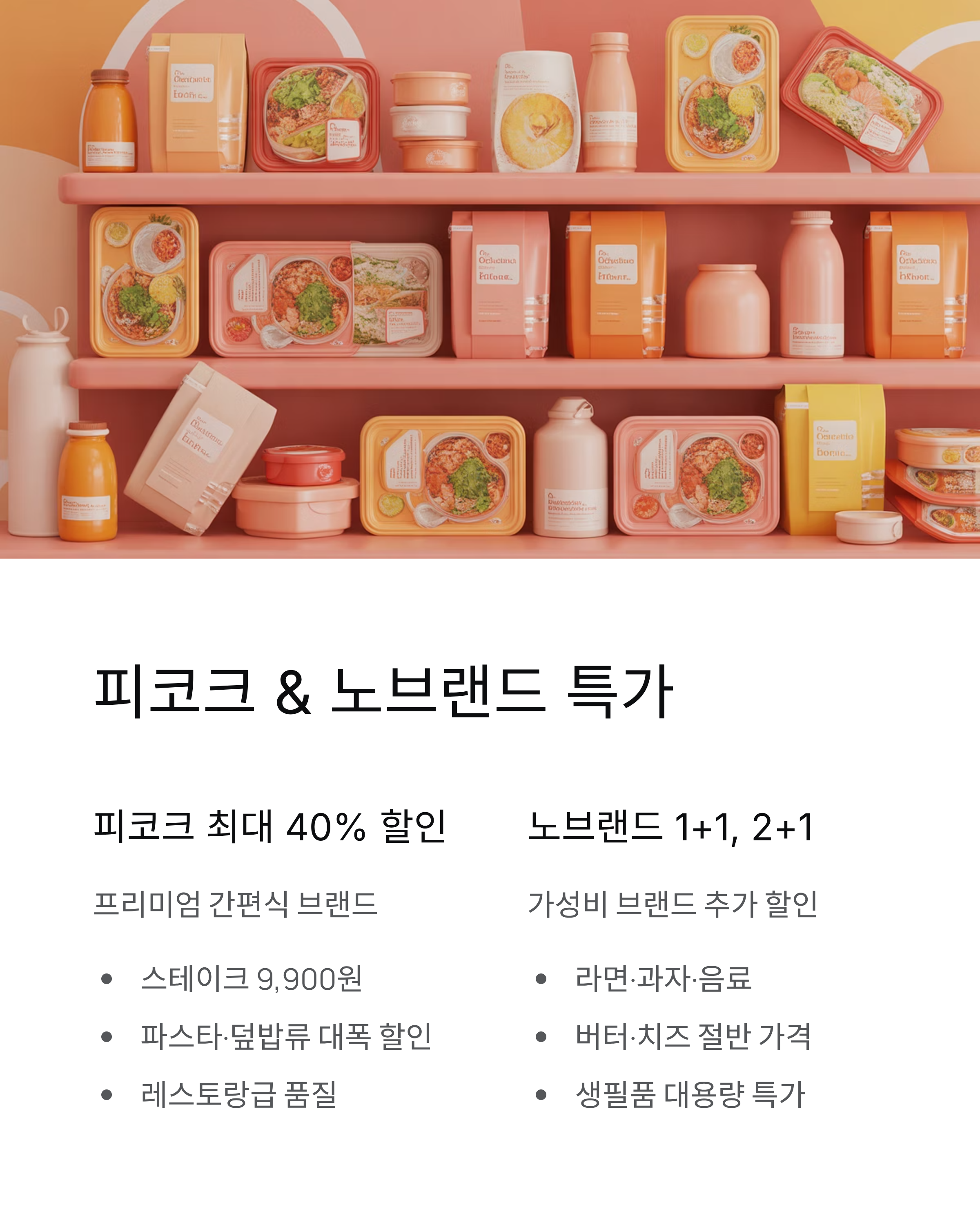 피코크 상품도 이번주 할인 대상이에요. 이마트의 프리미엄 간편식 브랜드인 피코크는 품질이 뛰어나기로 유명하죠. 피코크 스테이크, 파스타, 덮밥류가 최대 40% 할인되고 있어요. 혼자 사시는 분들이나 맞벌이 부부에게 정말 유용한 제품들이에요. 전자레인지에 몇 분만 돌리면 레스토랑급 요리가 완성되니까요.