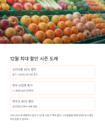 • 한우·수입육: 연말 특가 (최대 30% 할인)