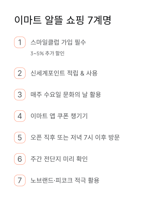 이번주 이마트에서 어떤 상품을 구매하셨나요? 알뜰 쇼핑 노하우를 댓글로 공유해주세요! 💬
